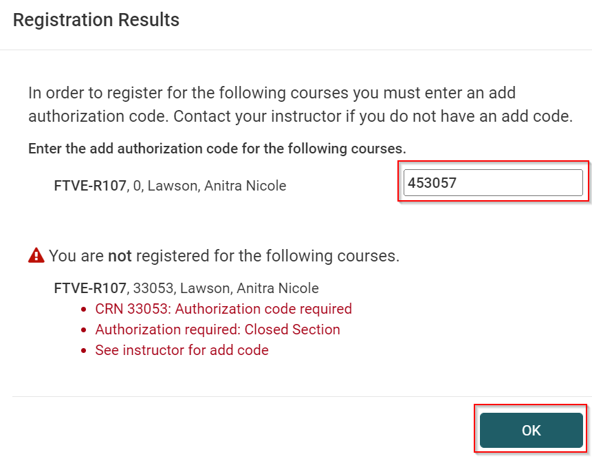 If a seat does not open up, the student may request an add code from the instructor before the last day to add deadline for the specific CRN listed in the online Schedule of Classes. If the instructor agrees to add the student and gives the student an add code, students must utilize the add code in their MyVCCCD portal to register in the course. Payment for the course must be made to finalize registration.